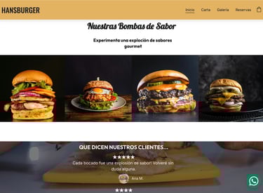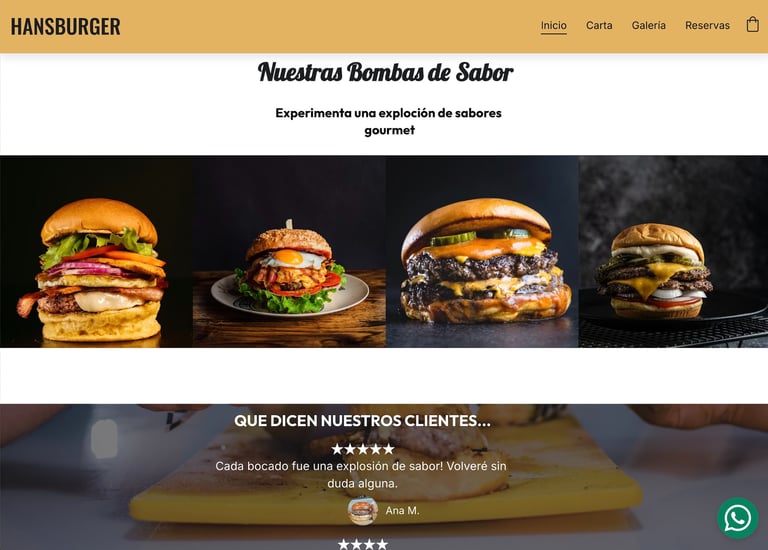 Una Landing page diseñada para abrir el apetito desde la primera frase: un mensaje directo, emocional y enfocado en guiar al usuario a reservar. El copy conecta con el placer de una hamburguesa gourmet bien hecha y transforma ese antojo en acción inmediata.